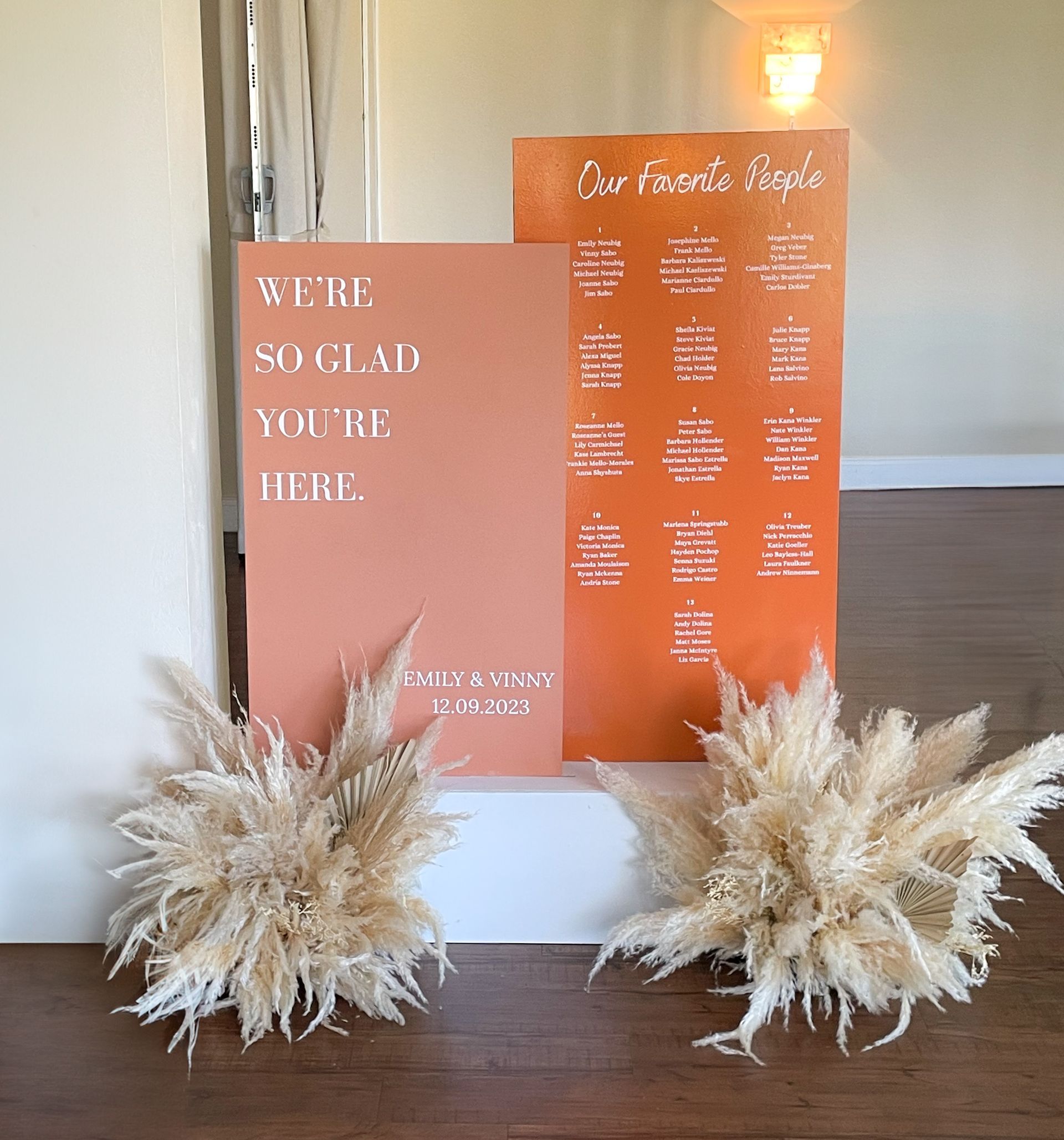 We can create custom statement pieces including welcome signs, seating charts, bar signs, signature drink displays, unplugged ceremony signs, escort card displays, and feature backdrops.Each piece is crafted using a variety of materials such as linen, wood, acrylic, mirror, canvas, etc. Whether your wedding feels colorful and creative, vintage-inspired, or modern and minimal, we design signage that blends seamlessly into your overall aesthetic. Minimum varies based on the piece.